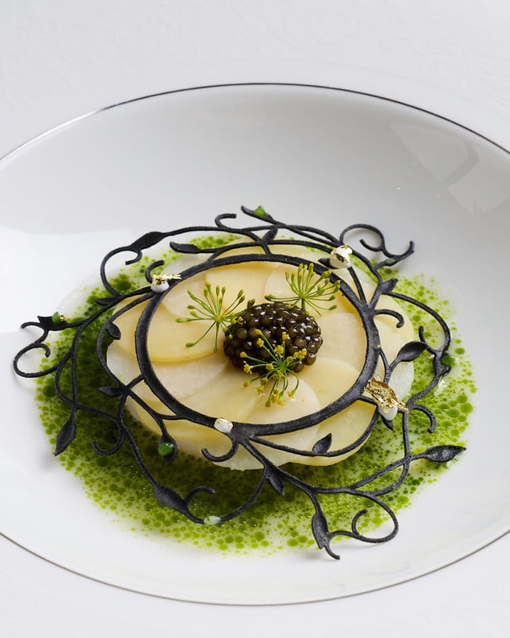 ペアリングシャンパンは Brut Réserve、Blancde Blancs、Blancdes Millénaires、Rosé Réserve です