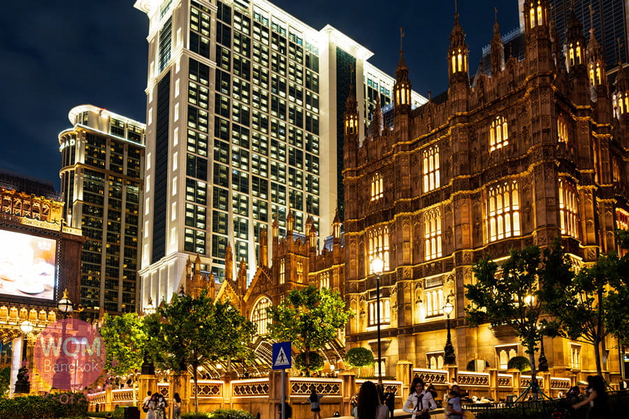 ラスベガスのメインストリート「ストリップ」のように、巨大なカジノホテルが立ち並ぶ「コタイストリップ」。マカオには老舗のリスボアを始め、アメリカのMGM、ウィンなど計6つのカジノホテルグループがありますが、コタイストリップにはサンズグループとメルコグループのホテルが連なっています。同じホテルグループは館内で繋がっており、暑い日や雨の日でも移動が快適。さらに、Wi-Fiもログインし直す必要がありません。