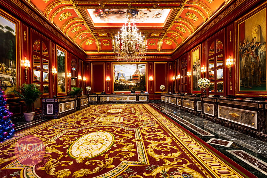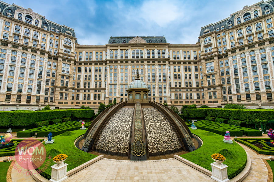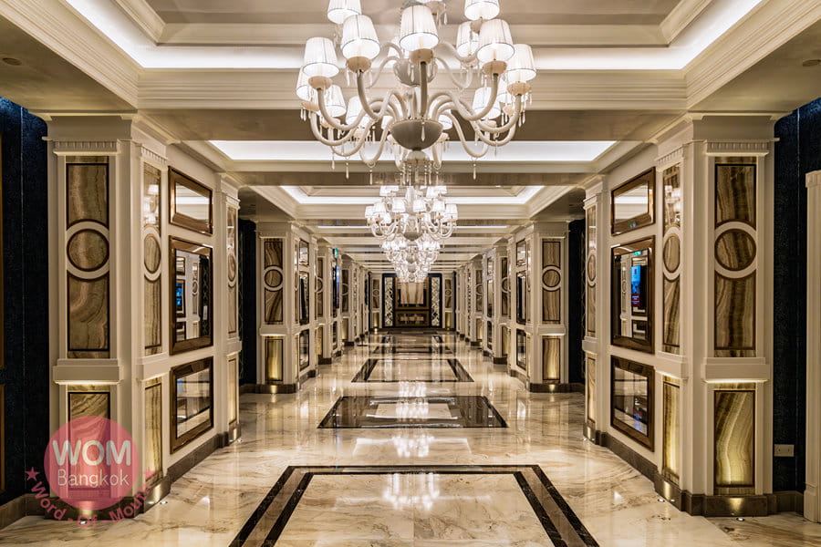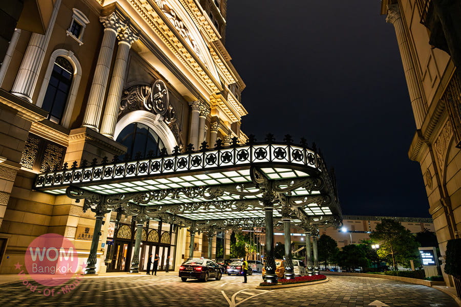 最後にご紹介したいのが、マカオをカジノで観光誘致し、地元の人々の生活を豊かにしようと尽力したスタンレー・ホー氏が創業したSJMグループのグランド・リスボア・パレスです。コタイ地区最新のIRであり、マカオ半島側の本店「グランド・リスボア」が歴史を感じる昔ながらのカジノホテルであるのと対照的に、こちらはまるでヨーロッパのお城のような見た目と、豪華で優雅な施設なのが、カジノだけでなく“家族で楽しめるIR”としての地位を確立しています。敷地内に、カール・ラガーフェルドがデザインした世界唯一のホテルと、パラッツォ・ベルサーチホテルがあります。