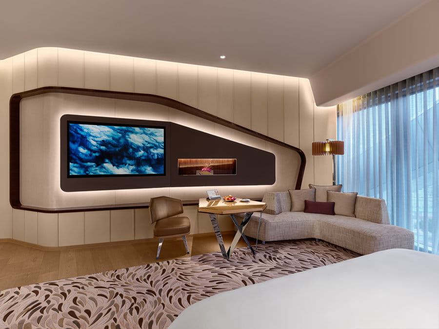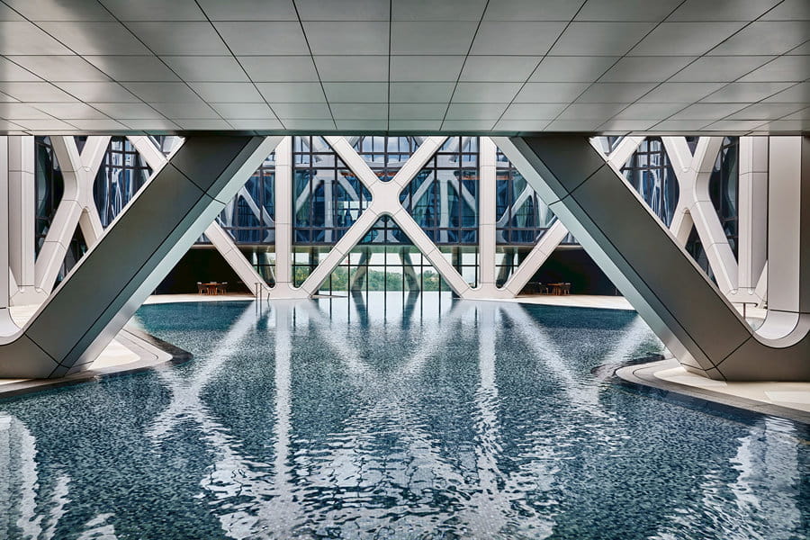 フォーブストラベルガイド2025で5ツ星獲得。世界的建築家Zaha Hadidによる設計で、マカオ初の「フリーフォーム外骨格構造による高層ホテル。外観の斬新さ未来感が評価されています